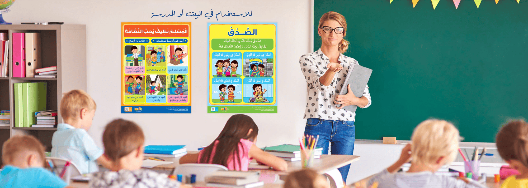 قيم الأخلاق 1 (6 لوحات تعليمية) - مجموعة لوحات تعليمية باللغة العربية